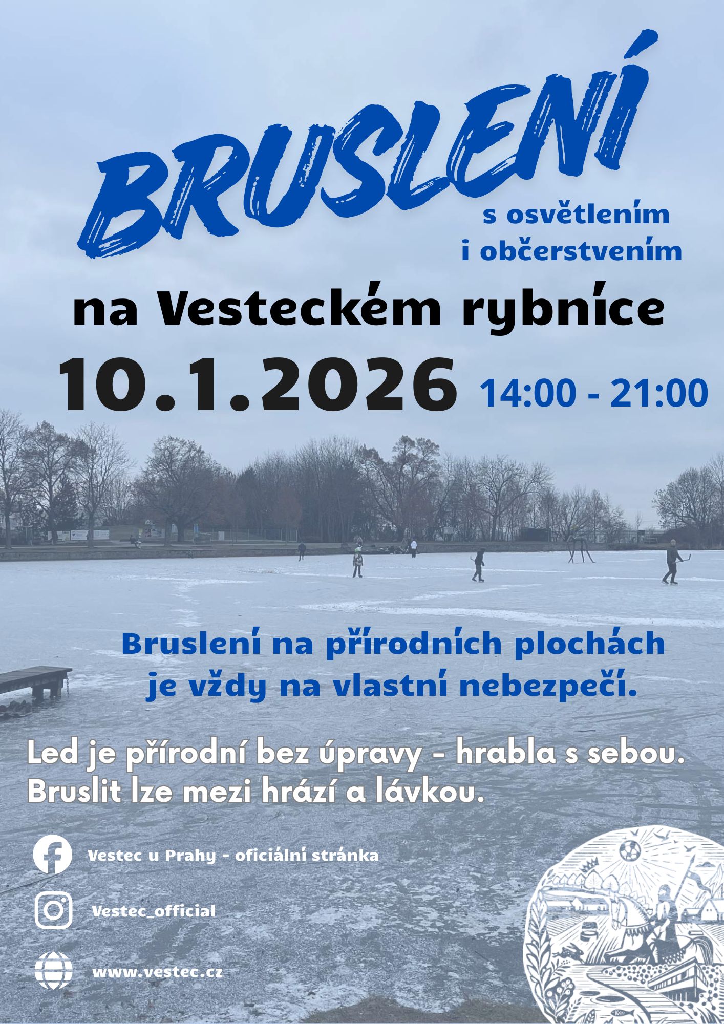 Zveme vás na večerní bruslení na Vesteckém rybníce – v sobotu 10. ledna až do 21 hod. Hrabla raději s sebou.